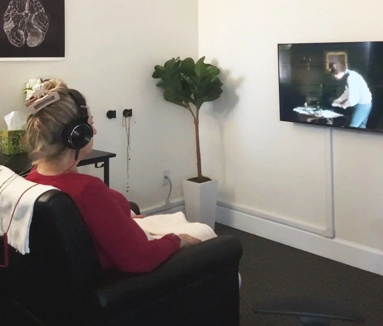 In our office, you’ll train your brain in a relaxed and supportive setting. Sensors are placed on your scalp using a gentle-water based gel where they measure brain activity and provide gentle feedback that guides your brain towards healthier patterns.